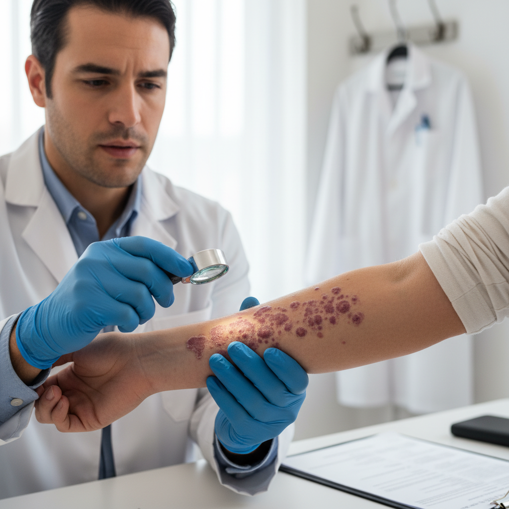 Impetigo, a superficial bacterial skin infection most commonly caused by Staphylococcus aureus and group A Streptococcus, presents with highly characteristic lesions that make it one of the most recognizable bacterial skin infections. The condition manifests in two primary forms: non-bullous (impetigo contagiosa) and bullous impetigo, each with distinctive features. Non-bullous impetigo, which accounts for approximately 70% of cases, begins as small erythematous macules that rapidly progress to vesicles and then to pustules. The hallmark of this condition is the development of thick, adherent, honey-colored or golden-yellow crusts that form when the pustules rupture and dry. These crusts are pathognomonic for impetigo and are often described as having a "stuck-on" appearance that is difficult to remove. The lesions typically occur on exposed areas such as the face, particularly around the nose and mouth, and extremities, though they can appear anywhere on the body. Bullous impetigo, caused primarily by specific strains of S. aureus that produce exfoliative toxins, presents with larger, flaccid bullae that contain clear or slightly turbid fluid. These bullae are fragile and rupture easily, leaving behind shallow erosions with a collarette of scale at the periphery. Both forms of impetigo are highly contagious and can spread rapidly through direct contact or fomites, making early recognition and treatment crucial for preventing outbreaks in schools and daycare centers.