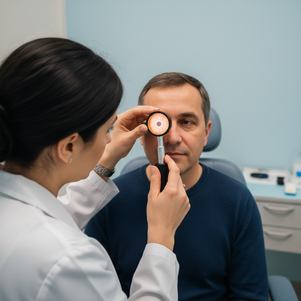 Hollenhorst plaques, also known as retinal cholesterol emboli, appear as bright, refractile, yellow-orange deposits within retinal arterioles and serve as visible evidence of systemic atherosclerotic disease and significant cardiovascular risk. These microscopic cholesterol crystals originate from ulcerated atherosclerotic plaques, typically in the carotid arteries or aortic arch, and travel through the circulation to lodge in the small retinal vessels, where they can be directly observed during ophthalmoscopic examination. While Hollenhorst plaques themselves rarely cause significant visual symptoms, their presence indicates active atherosclerotic disease and a substantially increased risk of stroke, heart attack, and other cardiovascular events. Patients with these retinal emboli may occasionally report transient visual disturbances, including brief episodes of vision loss, flickering lights, or temporary blind spots, particularly if the emboli temporarily obstruct retinal blood flow before becoming permanently lodged. The detection of Hollenhorst plaques during routine eye examination should prompt immediate and comprehensive cardiovascular evaluation, including carotid duplex ultrasonography, echocardiography, and assessment of traditional cardiovascular risk factors. Studies have demonstrated that individuals with retinal cholesterol emboli face a dramatically increased risk of stroke within the first year after detection, making their identification a critical opportunity for preventive intervention. The presence of these plaques often indicates the need for antiplatelet therapy, statin treatment, and potentially surgical intervention such as carotid endarterectomy, depending on the degree of carotid stenosis and overall cardiovascular risk profile.