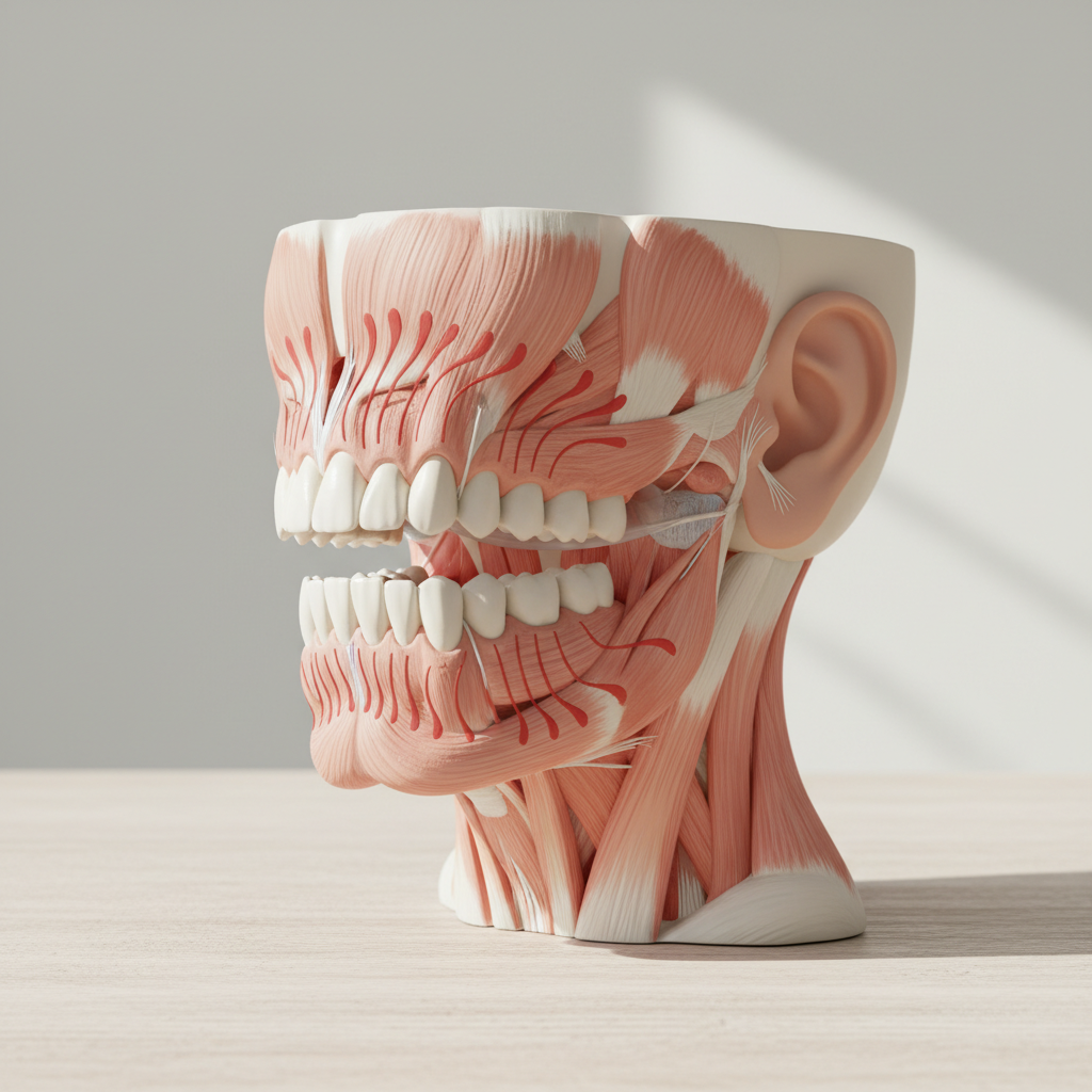 Myofascial pain syndrome affecting the muscles of mastication and facial expression represents a significant source of non-dental facial pain that can create convincing dental-like symptoms through complex referred pain mechanisms. This condition involves the development of trigger points within muscle fibers – hyperirritable spots that, when stimulated, produce both local pain and referred pain to distant areas. The muscles most commonly involved include the masseter, temporalis, pterygoid muscles, and various neck muscles, all of which can refer pain to dental structures when trigger points become active. Patients with myofascial pain syndrome often experience deep, aching pain that may be constant or intermittent, accompanied by muscle stiffness, limited jaw opening, and tenderness to palpation over affected muscles. The referred pain patterns can be remarkably specific, with trigger points in the masseter muscle commonly referring pain to the posterior teeth, while temporalis trigger points may create pain that seems to originate from the upper teeth and temple region. This condition often develops secondary to factors such as stress, poor posture, teeth grinding, prolonged jaw clenching, or trauma to the head and neck region. The pain typically worsens with muscle use, such as chewing or speaking, which can further confuse the clinical picture by mimicking dental pain aggravated by function. Unlike dental pain, myofascial pain often responds to muscle relaxation techniques, trigger point therapy, and stress management, while dental treatments provide little relief.