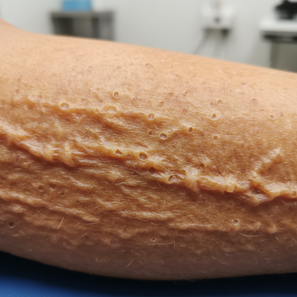A lesser-known but significant skin texture change associated with thyroid dysfunction is the development of coarse, pebbled skin that resembles the texture of an orange peel or goose bumps that never resolve. This condition, often called keratosis pilaris-like changes, occurs when altered thyroid hormone levels disrupt normal keratinocyte turnover and follicular keratinization processes, leading to the accumulation of keratin plugs in hair follicles and surrounding skin. Clinical observations have shown that this pebbled texture most commonly affects the upper arms, thighs, and buttocks of hypothyroid patients, though it can appear anywhere on the body where hair follicles are present. The affected skin feels rough and bumpy to the touch, with small, hard bumps that may be flesh-colored or slightly darker than the surrounding skin. Unlike typical keratosis pilaris, which is primarily a cosmetic concern, thyroid-related keratosis often covers larger areas and may be accompanied by inflammation and itching. Research suggests that this texture change results from the combination of decreased skin cell turnover, altered sebum composition, and impaired barrier function that characterizes hypothyroid skin. The pebbled appearance can be particularly pronounced in areas where clothing creates friction, and unlike environmental or genetic causes of similar skin textures, thyroid-related keratosis typically improves significantly once optimal thyroid hormone levels are achieved and maintained, though improvement may take several months to become apparent.