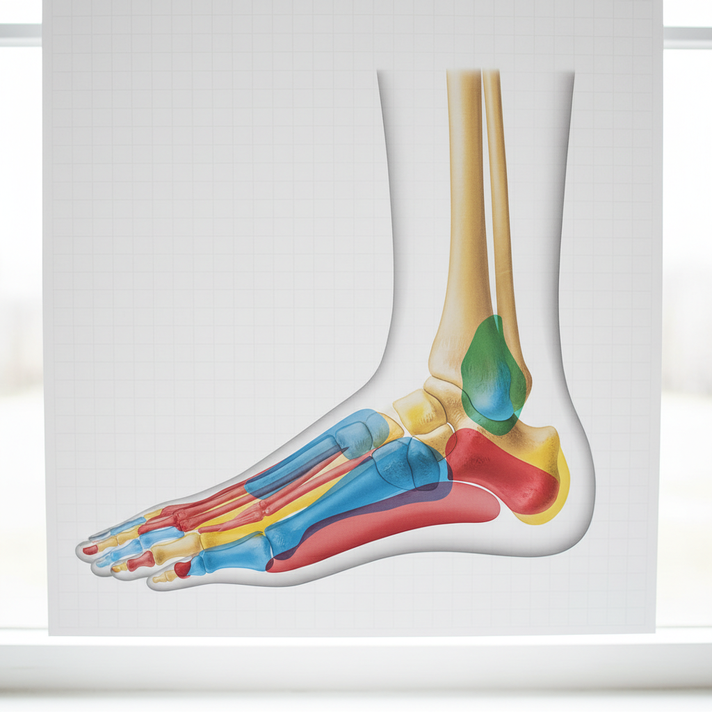 The hindfoot and ankle region, encompassing the talus and calcaneus bones along with the ankle joint complex, bears enormous loads and facilitates the transition of forces between the leg and foot during locomotion. Ankle sprains, particularly involving the lateral ligaments, represent one of the most common musculoskeletal injuries and can lead to chronic instability if not properly rehabilitated. Achilles tendinopathy, affecting the largest tendon in the body, can present as either insertional pain at the heel attachment or non-insertional pain in the mid-portion of the tendon, often related to overuse or degenerative changes. Posterior tibial tendon dysfunction, beginning as tenosynovitis and potentially progressing to tendon rupture, can cause pain along the inner ankle and arch while leading to progressive flatfoot deformity. Subtalar joint arthritis, affecting the joint beneath the ankle joint proper, can cause deep, aching pain in the hindfoot that worsens with walking on uneven surfaces. Calcaneal fractures, often resulting from high-energy trauma such as falls from height, can cause severe hindfoot pain and may lead to long-term complications including arthritis and chronic pain. Tarsal coalition, an abnormal connection between bones in the hindfoot, may become symptomatic during adolescence and cause pain and stiffness in the hindfoot region. The hindfoot's role as the primary shock absorber and its complex three-dimensional movement patterns make it susceptible to both acute traumatic injuries and chronic overuse conditions.