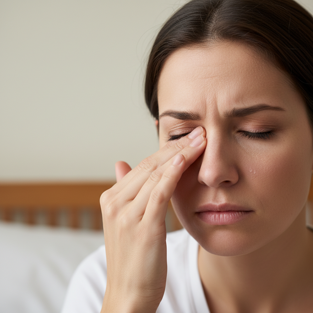 The sensation of pressure in or behind the eyes creates a feeling of fullness, heaviness, or as if something is pushing outward from within the eye socket. This distinctive type of discomfort often indicates increased pressure within the eye itself or in surrounding structures such as the sinuses. Glaucoma, both acute and chronic forms, commonly produces pressure sensations as intraocular pressure rises above normal levels, potentially damaging the optic nerve if left untreated. Patients often describe this feeling as having their eyes pushed from behind or experiencing a constant sense of fullness that doesn't resolve with rest or eye drops. Sinus congestion and infections frequently cause pressure sensations around the eyes, particularly affecting the frontal and ethmoid sinuses that lie close to the eye sockets. This pressure can be especially noticeable when bending forward, lying down, or during changes in altitude, as these positions affect sinus drainage and pressure equalization. Tension headaches can create a sensation of pressure around the eyes as part of a broader pattern of head and neck muscle tension. The pressure feeling may also result from orbital cellulitis, a serious infection of the tissues surrounding the eye that can cause swelling and increased pressure within the eye socket. Thyroid eye disease, associated with hyperthyroidism, can cause the muscles and tissues behind the eyes to swell, creating persistent pressure sensations along with eye protrusion and vision changes.